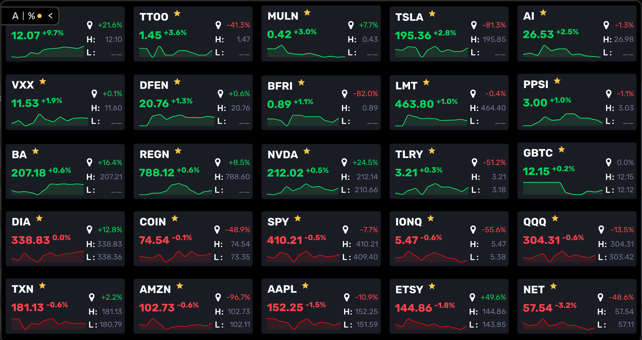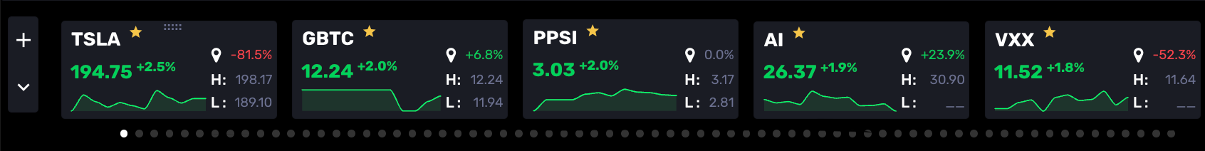 News- If related News, a news icon will be shown next to symbol. (e.g. PNNT & AAPL in image above)