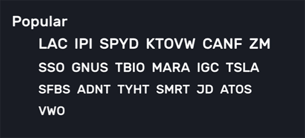 MOMO is built to help highlight stocks stand out. Popular simply presents stocks which other users are actively researching and engaging with. Click on any the listed symbols to open the action window to research or set an alert.
